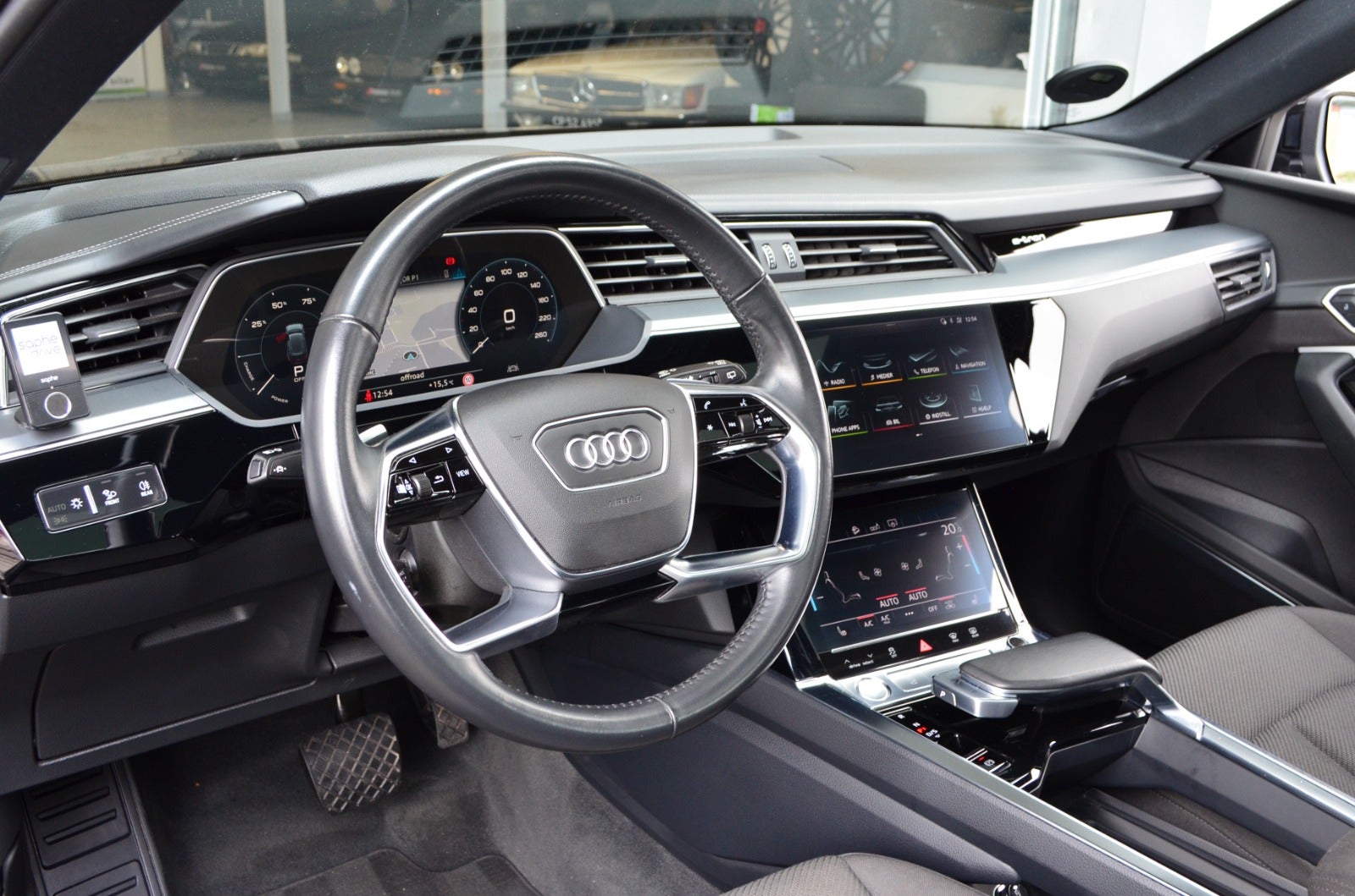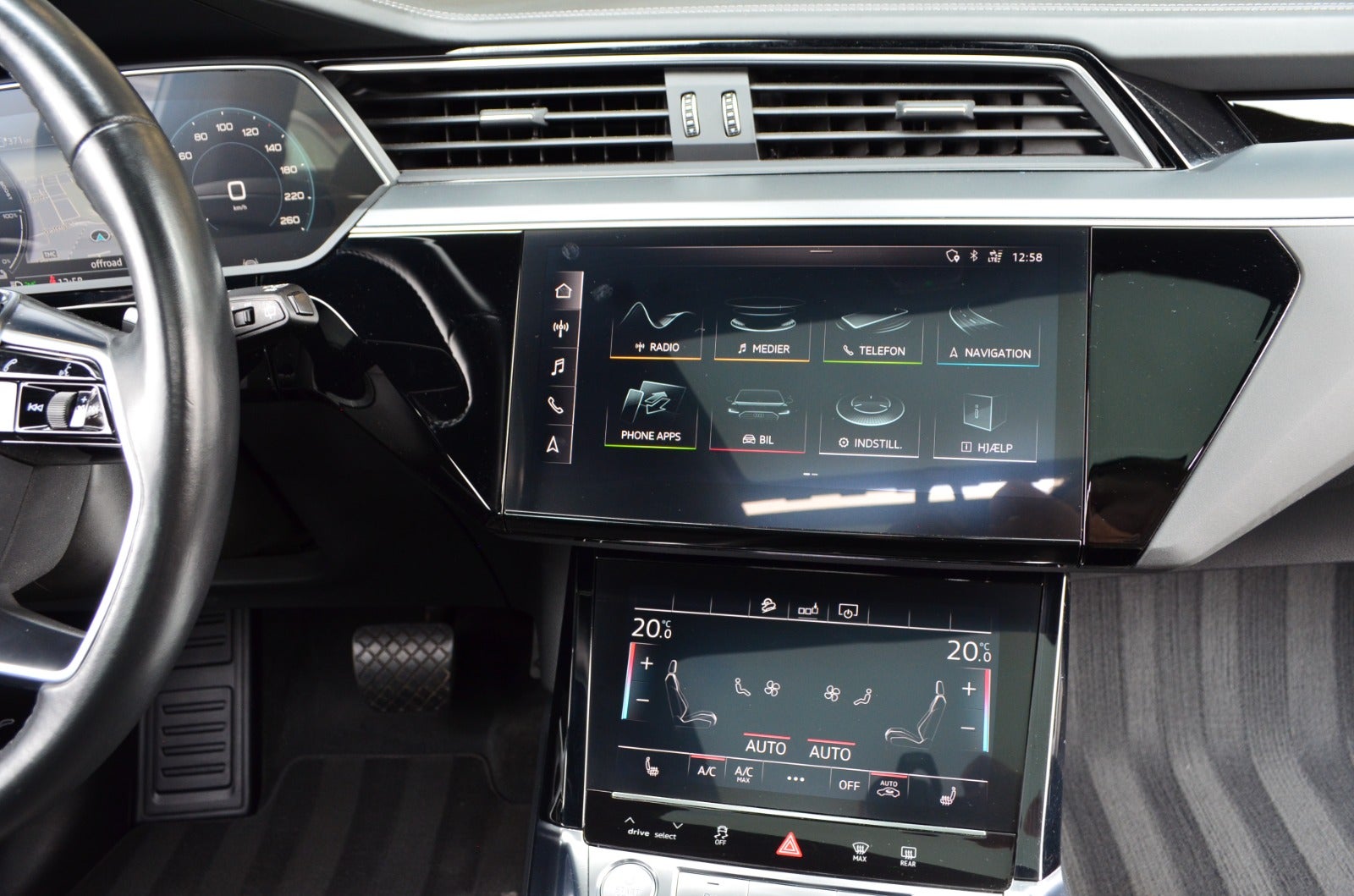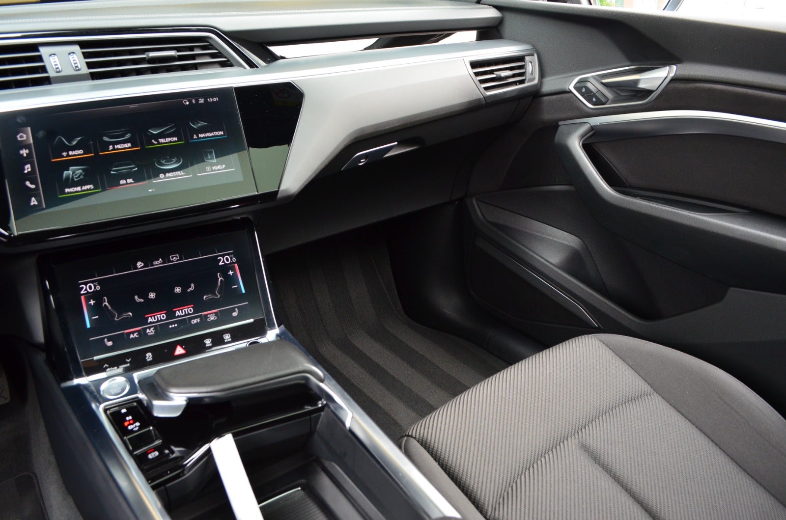 6NQ - Loftbeklædning i sort stof, 9VS - B&O Premium Sound System med 3D lyd, VW0 - Akustiske sideruder, for og bag, 3FU - Panoramaglastag, 5ZC - Nakkestøtter til forsæder, indstillige, 0E0E - Mythossort metallak, 1D2 - Anhængertræk, aftageligt, 6SJ - Bagagerumsmåtte, variabelt foldbar, GA2 - Komfortparkeringsklimafunktion, PCH - Vognbaneskiftadvarsel inklusive Audi pre sense rear, udstigningsadvarsel og assistent til registrering af tværgående trafik bagved, PGC - Komfortnøgle, sensors.åbning og, kørecomputer, digitalt cockpit, bagagerumsdækken, dobbelt bagagerumsbund, multifunktionsrat, læderrat, stofindtræk, sportssæder, el indst. forsæder, højdejust. førersæde, højdejust. forsæder, el indst. førersæde, el-justerbar lændestøtte, ambiente belysning, mørk loftbeklædning, alufælge, 20" alufælge, el-soltag, glastag, el-klapbare sidespejle m/varme, tågelygter, fuld led forlygter, adaptive forlygter, led baglygter, dynamisk blinklys, dynamisk blinklys i bag, tagræling, mørktonede ruder i bag, aftageligt træk, områdebelysning, ratgearskifte, 4 zone klima, køl i handskerum, elektrisk kabinevarmer, varmepumpe, nøglefri adgang, nøglefri tænding, adaptiv fartpilot med kø-assistent, aut. nedbl. bakspejl, udv. temp. måler, sædevarme, 4x el-ruder, fod betjent bagklap, el betjent bagklap, frunk, luftundervogn, adaptiv undervogn, elektrisk parkeringsbremse, trådløs mobilopladning, manuel forvarmning af batteri, type-2 ladekabel, app integration, dab+ radio, musikstreaming via bluetooth, apple carplay, android auto, sd kortlæser, usb-c tilslutning, alarm, regnsensor, 360° kamera, bakkamera, parkeringssensor (bag), parkeringssensor (for), dæktryksmåler, træthedsregistrering, førerovervågning med advarsel, skiltegenkendelse, intelligent hastighedsassistent, isofix, airbag, fjernlysassistent, automatisk lys, lygtevasker, vognbaneassistent, blindvinkelsassistent, automatisk nødbremsesystem, auto hold, automatisk nødassistent
