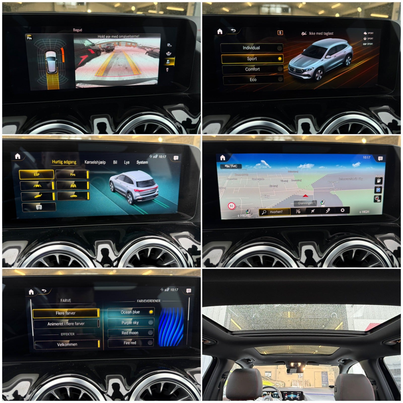 Standardpakke, Premiumpakke, Interiørlister i sort åbenporet lindetræ, AMG, Anhængertræk med ESP® trailer stabilisering og nedfældeligt træk, Panorama el-skydetag, Førerassistentpakke, Cosmossort metallak, kørecomputer, digitalt cockpit, bagagerumsdækken, multifunktionsrat, ambiente belysning, alufælge, vinterhjul, glastag, el-soltag, el-sidespejle, el-klapbare sidespejle m/varme, adaptiv fartpilot, apple carplay, bakkamera, blindvinkelsassistent