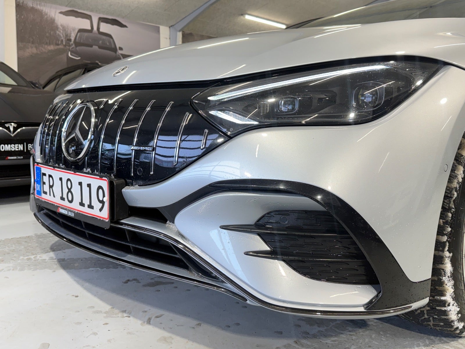 Standardpakke, AMG eksteriør, Premiumpakke, Anhængertræk med ESP® trailer stabilisering og nedfældeligt træk, High-tech sølv metallak, Dash cam, delkunstlæderindtræk, kørecomputer, digitalt cockpit, multifunktionsrat, læderrat, læderindtræk, el indst. forsæder, el indst. førersæde, el indst. førersæde m. memory, justerbar lændestøtte, el-justerbar lændestøtte, el komfortsæder, mørk loftbeklædning, ambiente belysning, 19" alufælge, vinterhjul, el-klapbare sidespejle m/varme, adaptive forlygter, led baglygter, svingbart træk (elektrisk), mørktonede ruder i bag, områdebelysning, 4 zone klima, køl i handskerum, elektrisk kabinevarmer, varmepumpe, nøglefri adgang, nøglefri tænding, adaptiv fartpilot med kø-assistent, aut. nedbl. bakspejl, udv. temp. måler, sædevarme, varme i bagsæde, 4x el-ruder, el betjent bagklap, adaptiv undervogn, elektrisk parkeringsbremse, trådløs mobilopladning, app integration, apple carplay, usb-c tilslutning, musikstreaming via bluetooth, dab+ radio, håndfrit til mobil, navigation, alarm, regnsensor, 360° kamera, parkeringssensor (bag), parkeringssensor (for), trafikkamera, videoovervågning, dæktryksmåler, træthedsregistrering, førerovervågning med advarsel, skiltegenkendelse, isofix, intelligent hastighedsassistent, automatisk lys, airbag, esp, vognbaneassistent, blindvinkelsassistent, automatisk nødbremsesystem, automatisk nødassistent, auto hold